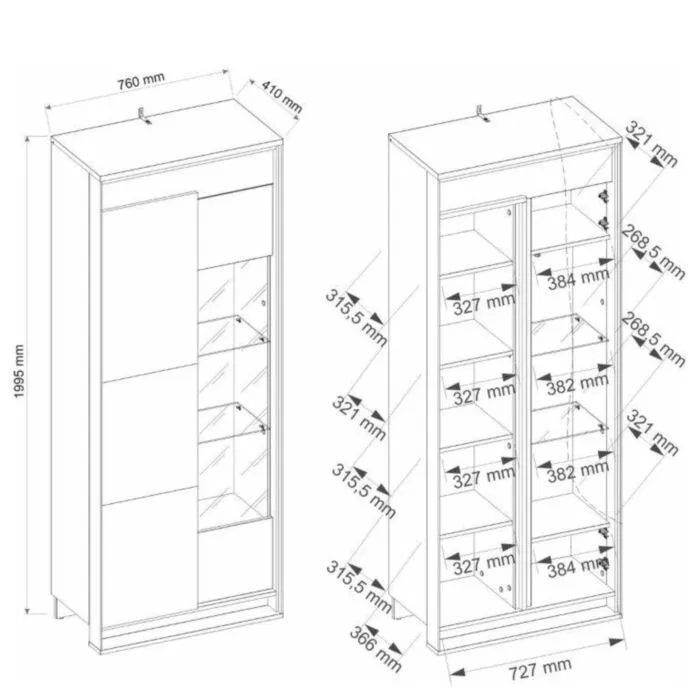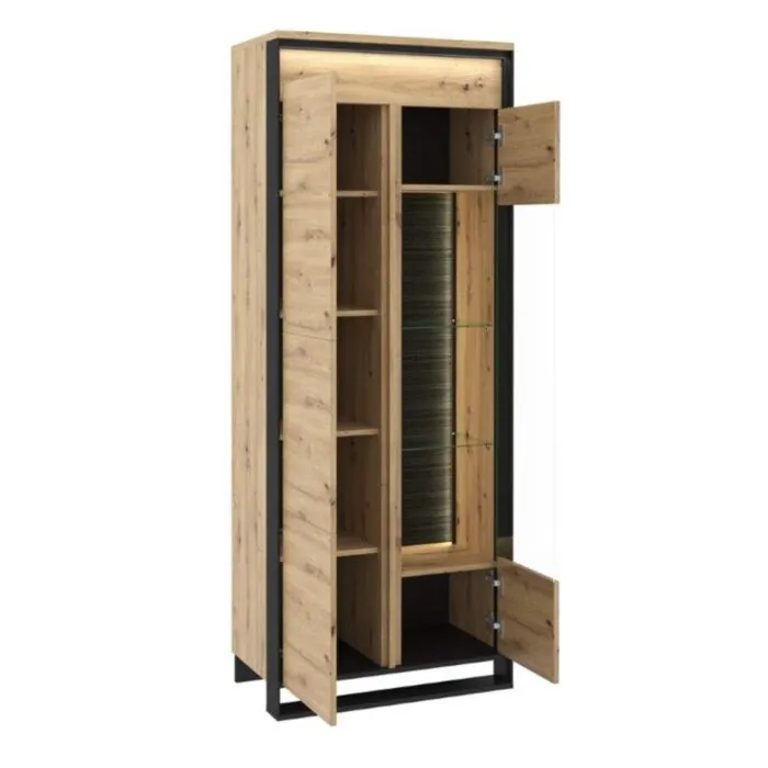 Vitrina KVIN vas bo navdušila s svojim modernim izgledom in svojo praktično uporabo. Na levem delu se nahaja zaprta knjižna polica s policami. Desna stran je razdeljena na cono z zasteklitvijo in del vrati s zaprtim prostom.