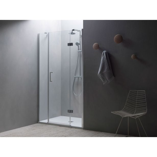 Samostojna tuš vrata (desna) iz 6 mm prozornega kaljenega stekla. Zapiranje z magnetnim profilom.