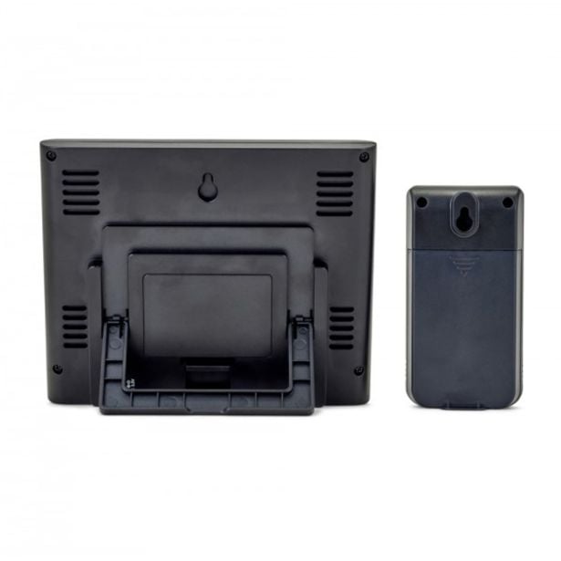 Velik 12 x 8 cm zaslon na, Večfunkcijski za notranjo in zunanjo temperaturo, vlago ter napoved vremena; vključuje tudi funkcije koledarja, alarma in ure.