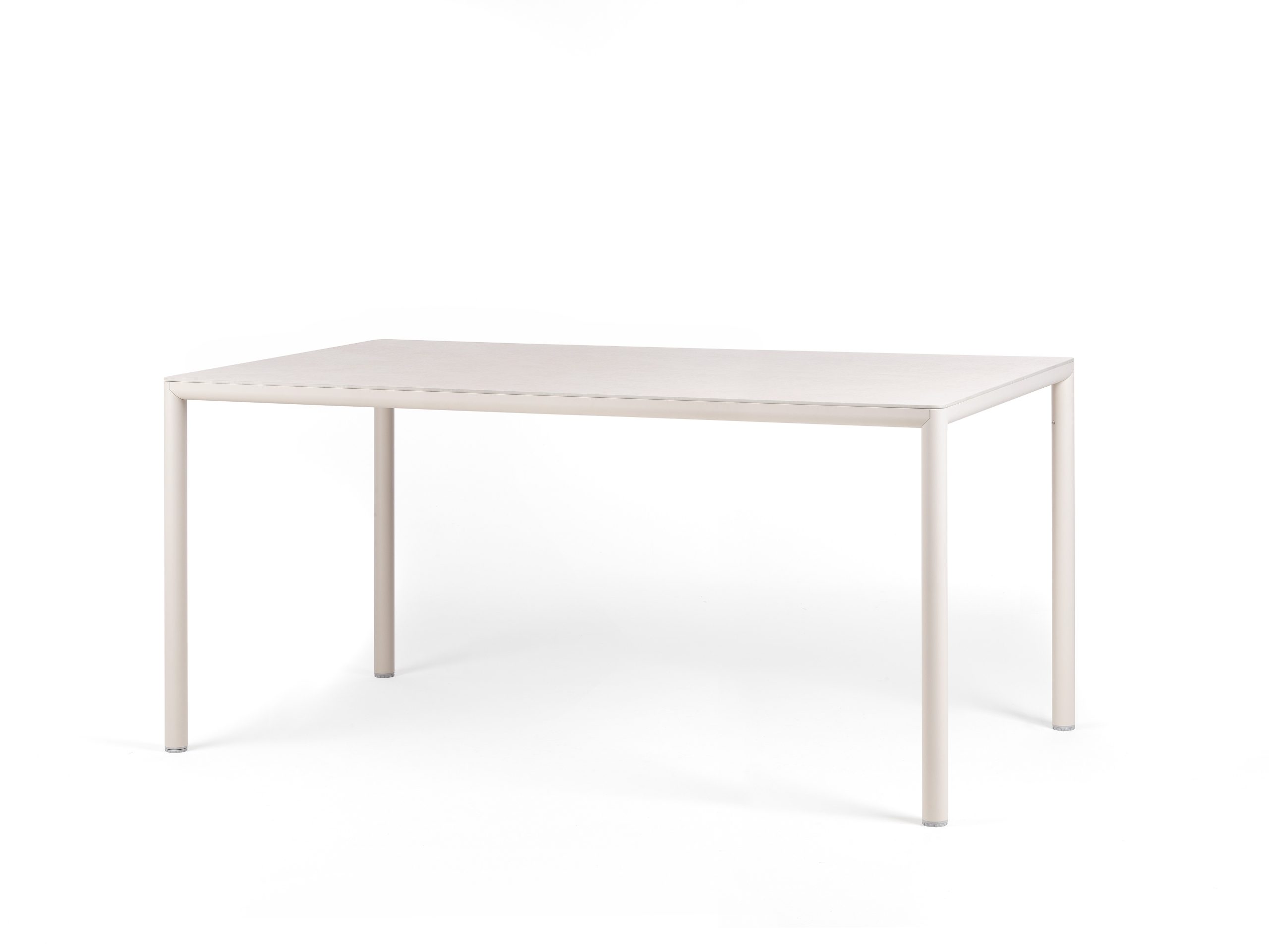 Vrtna miza PIAVE 160x 90 iz pohištvene serije Piave priznanega proizvajalca NARDI navdušuje z izjemno atraktivnim in sodobnim videzom, ki se odlično poda v moderne zunanje ambiente. Mizna plošča je izdelana iz HPL Solid Core laminata, ki zagotavlja visoko odpornost na vremenske vplive, obrabo in UV-žarke. Noge so iz prevlečenega aluminija z mat površinsko obdelavo, kar mizi daje eleganten videz in stabilnost. Za popolno prilagoditev terenu so dodane nastavljive nogice, ki omogočajo stabilno postavitev tudi na neravnih površinah. Miza je na voljo v različnih dimenzijah in štirih sodobnih barvah: antracit, tortora, tabaco in corda, kar omogoča enostavno usklajevanje z ostalim vrtnim pohištvom. Piave je mizni sistem, ki združuje vizualno lahkotnost in formalno ravnovesje s funkcionalnostjo.