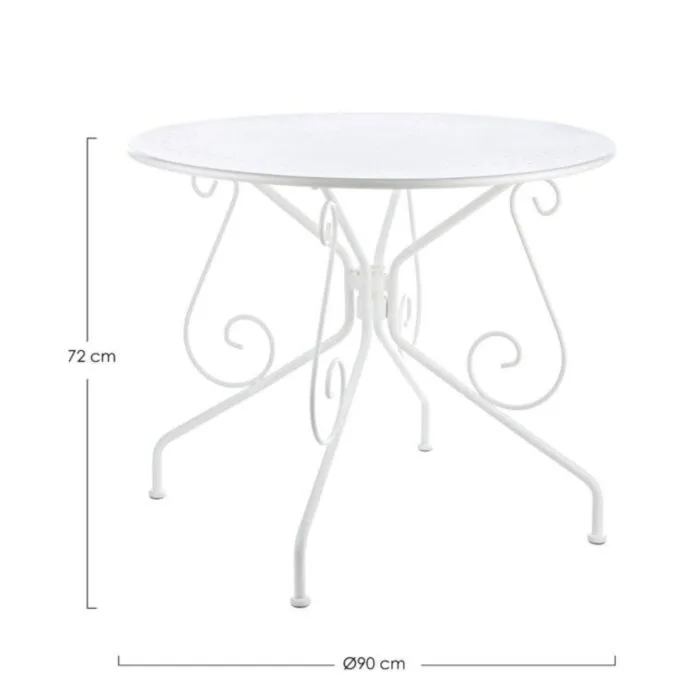Vrtna mizica ETIENNE D90 bela je narejena iz jekla z mat zaključkom.