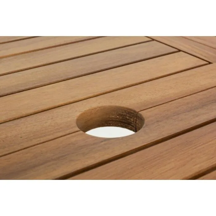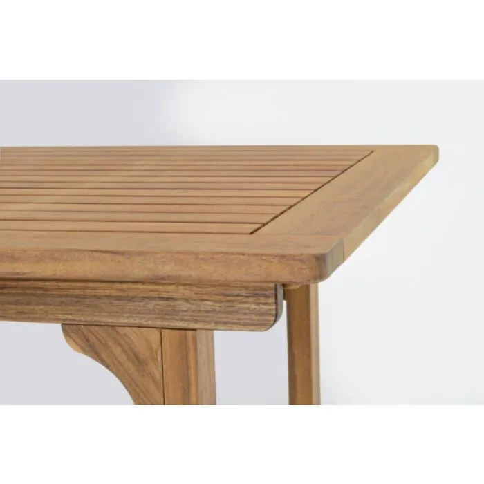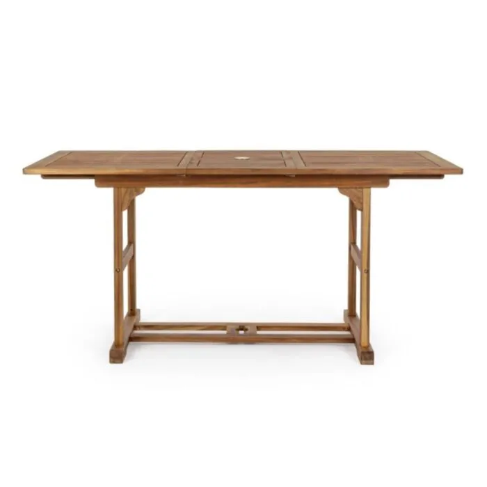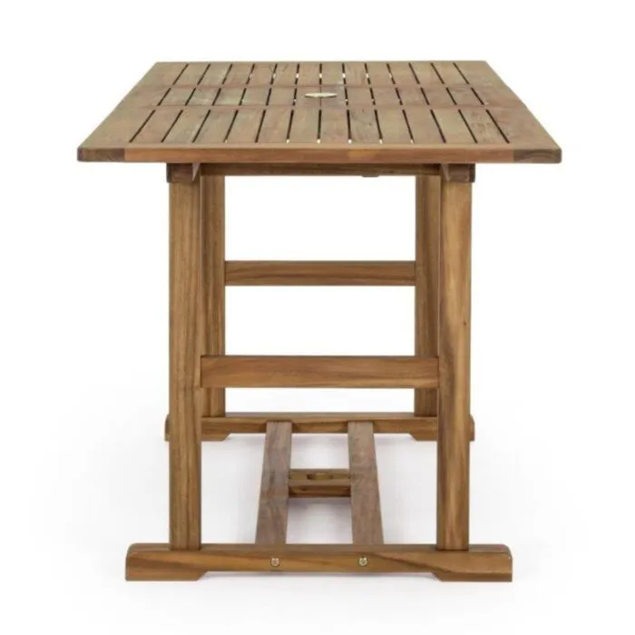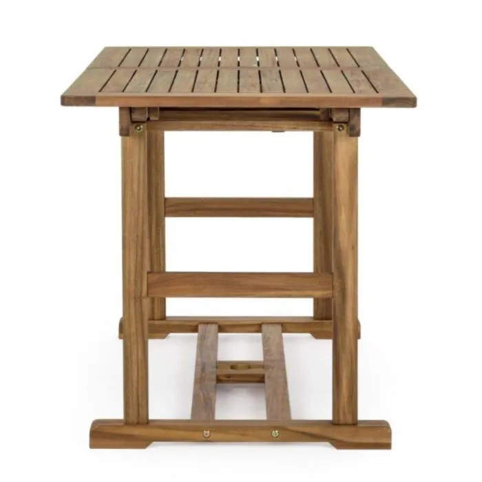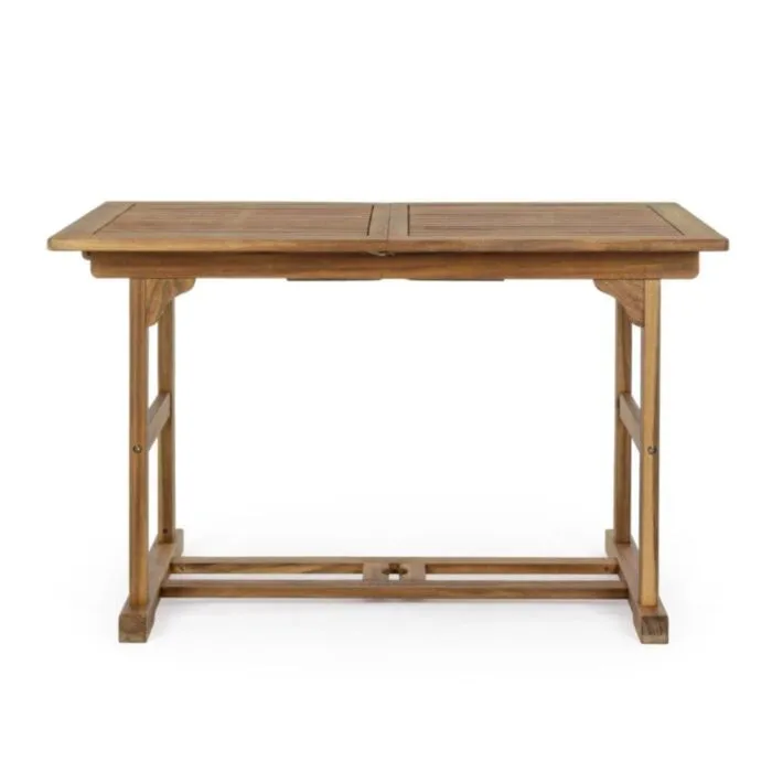 Vrtna raztegljiva miza NOEMI 120-160X70 je narejena iz lesa z oljnim premazom. Okovje je iz jekla in vmes ima drsno palico kjer lahko mizo raztegnete.