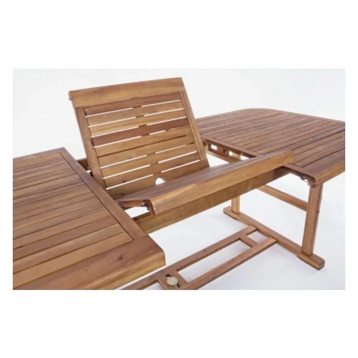 Vrtna raztegljiva miza NOEMI RETT 180-240X100 je narejena iz lesa z dvojnim robom. Čez ima oljno oblogo.