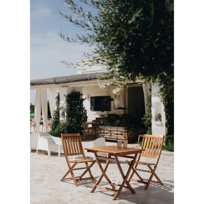 Vrtna zložljiva miza NOEMI QU 70X70 je narejena iz lesa z oljnim premazom. Je zložljiva.