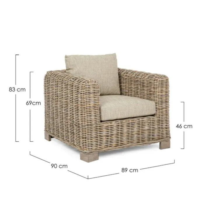 Vrtni fotelj FORTALEZA ima okvir iz lesa in tkanja. Blazine s snemljivo prevleko za notranjo uporabo (55% bombaž, 45% poliester).