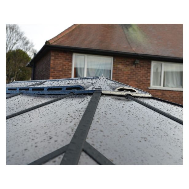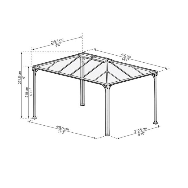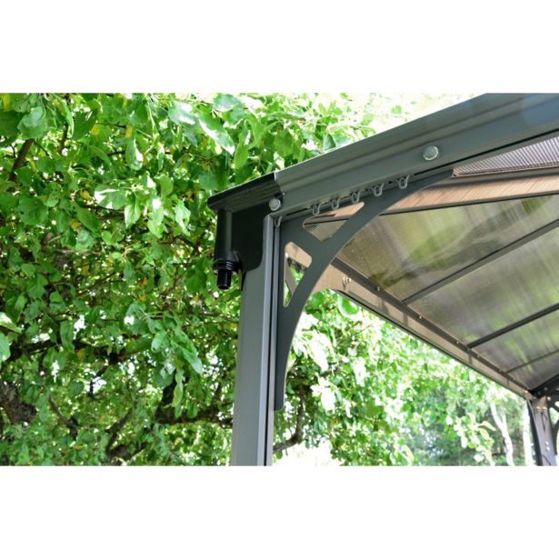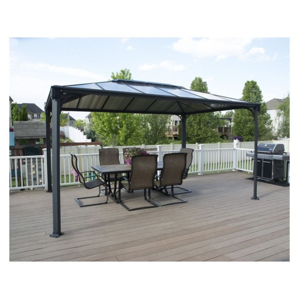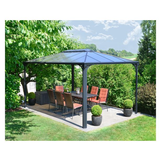 Paviljon Palram Mariniquie 4300 v sivi barvi izgleda elegantno, praktičen in čudovit dodatek za vašo teraso.
