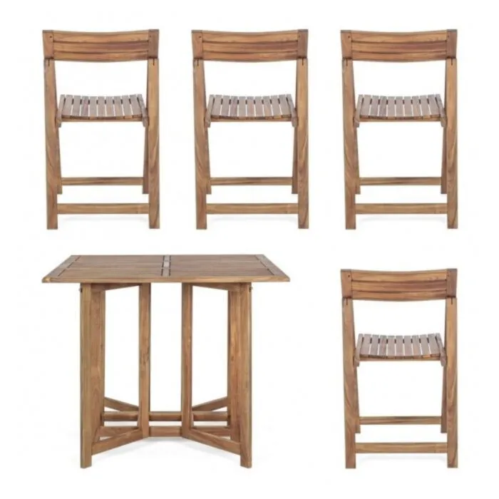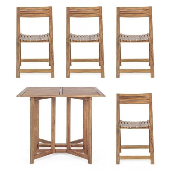 Vrtni set NOEMI ima strukturo iz lesa z oljnim zaklučkom. Set je zložljiv. V setu je všteta ena mizica ter štirje stoli.