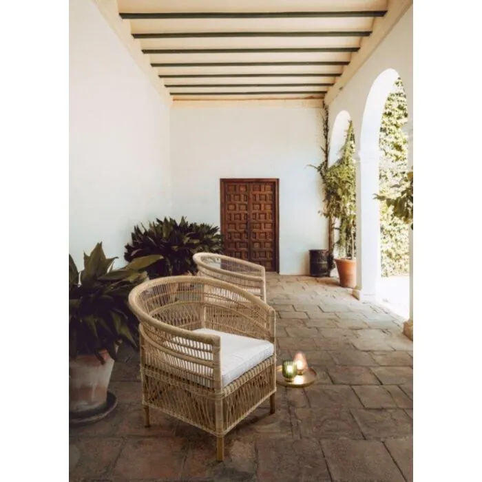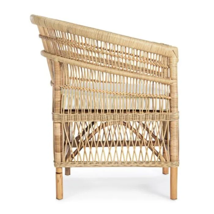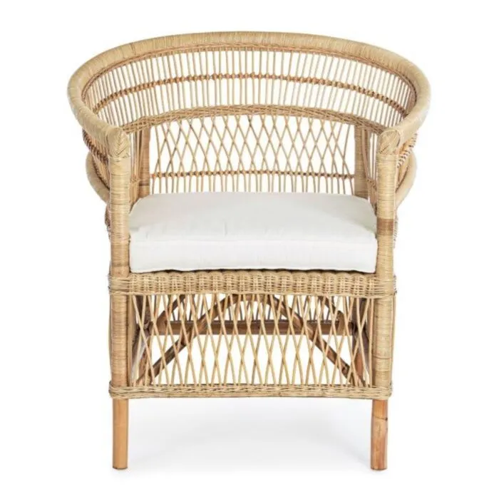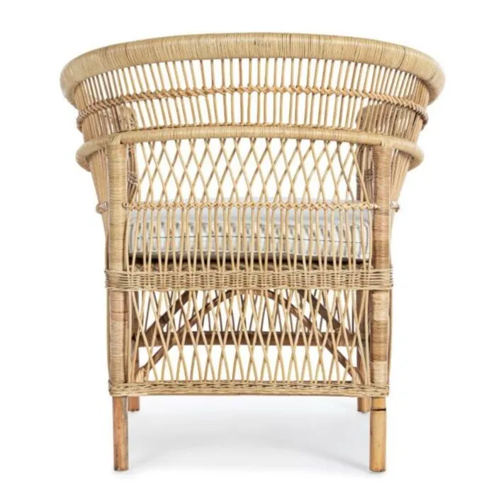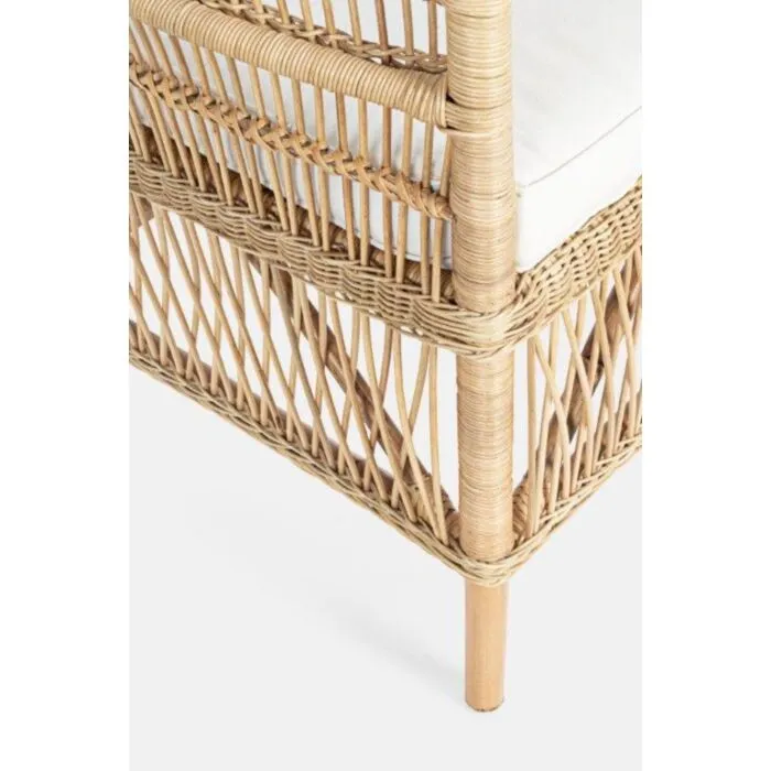 Narejen je iz ratana. Ima odstranljivo bombažno blazino. Priporočamo, da izdelek ne izpostavljate slabim vremenskim pogojom.