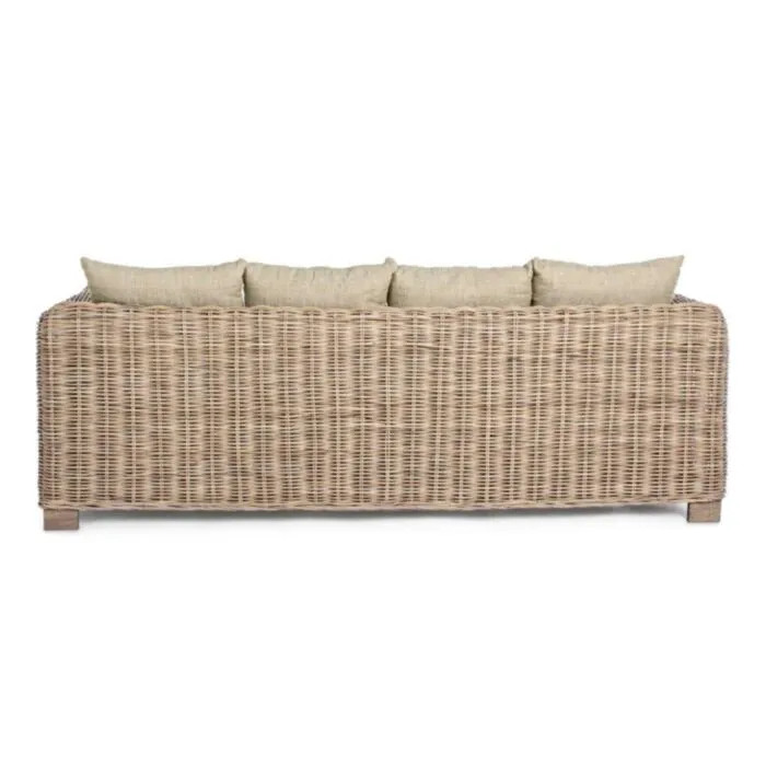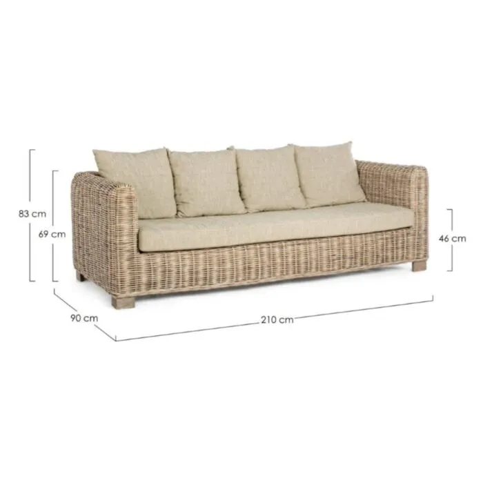 Vrtni trosed FORTALEZA je narejen iz ratana in lesenega okvirja. Blazine imajo snemljivo prevleko (55% bombaž, 45% poliester), kar omogoča lažje vzdrževanje. Trosed je primeren za notranje prostore.