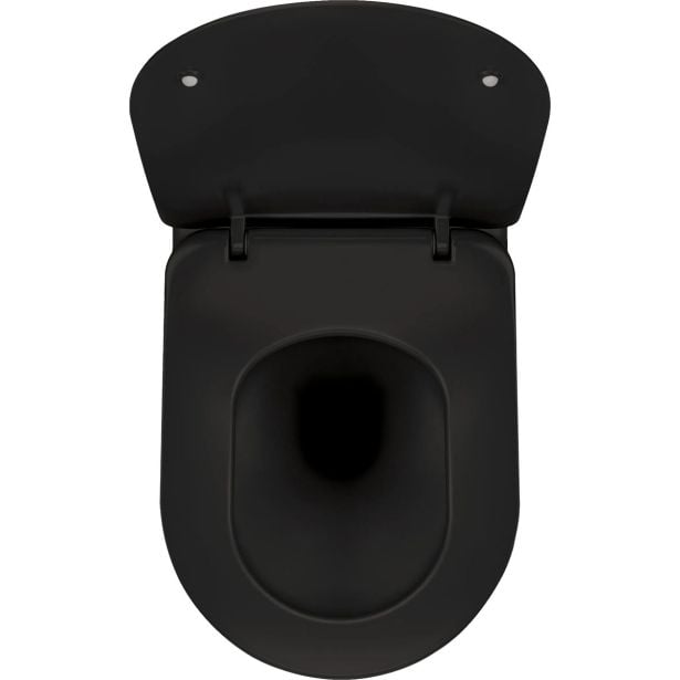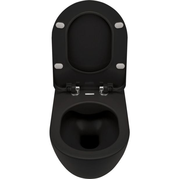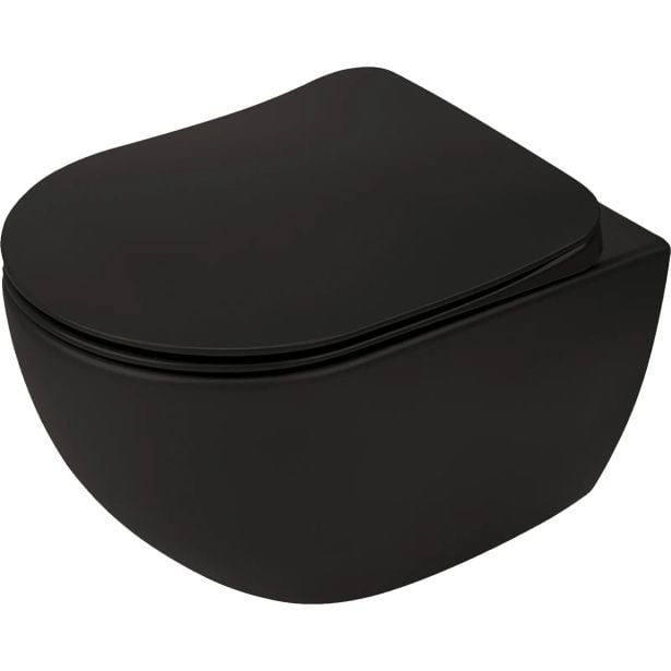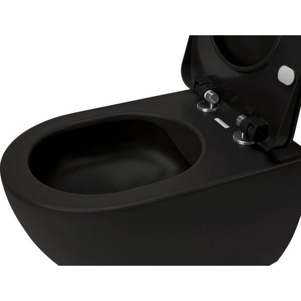 Črna straniščna školjka, izdelana iz vrhunske keramike. Laboratorijsko preizkušen material sčasoma ne bo razpokal ali spremenil barve, zato bo vaše stranišče videti kot nova leta kasneje.