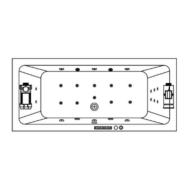 Kopalna kad za vgradnjo Elektra 170 x 75. Kad ima vodni masažni sistem, ki z vodno črpalko ustvarja pritisk ter pretok vode skozi masažne šobe. Tako se ustvarijo zračne kroglice, ki z veliko hitrostjo vode intenzivno masirajo telo.