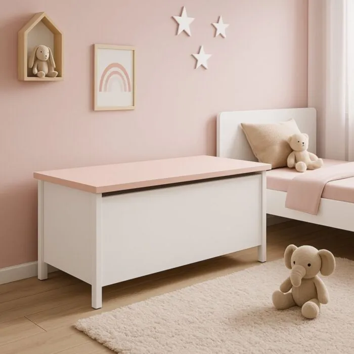 Zaboj za shranjevanje BELLA je zelo praktična. Lahko se ga uporabi kot mizico ali pa za shranjevanje stvari. Zaradi svoje nežne barve je primeren za vsako dekliško spalnico.