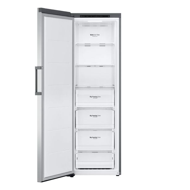 Elegantno zasnova LG zamrzovalna omara bo v vašo kuhinjo vnesla eleganco, izboljšano funkcionalnost in prodorno svežino živil ? tehnologija Total No Frost, večkratni pretok zraka ? hladen zrak teče v vse smeri in hrano obdaja s hladnim zrakom, da ohrani kar največ svežine.