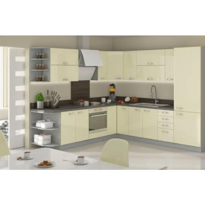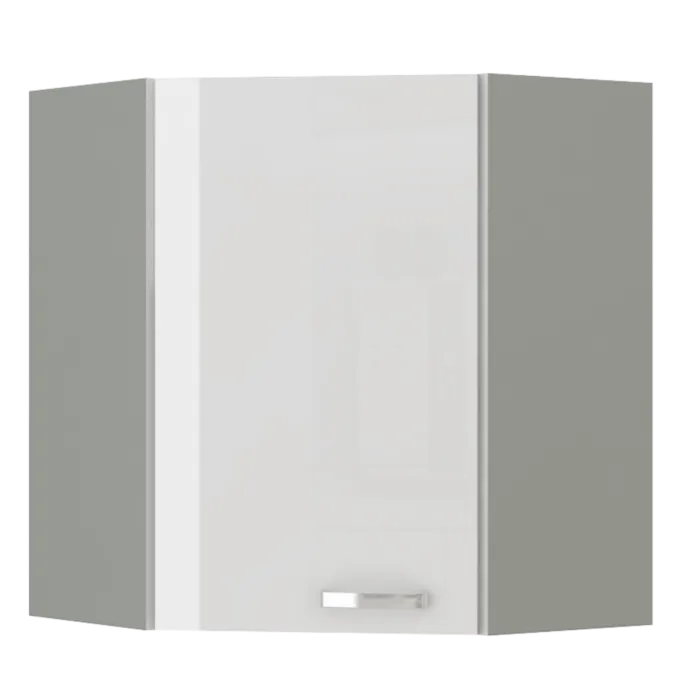 Zgornja kotna omara ELITE 60x60G je sestavljena iz fronte iz MDF plošče, debeline 16 mm, robovi so iz ABS 1 mm. Korpus je narejen iz laminirane plošče, debeline 16 mm, robovi so iz melamina. Kuhinjski element je na voljo v treh barvah visokega sijaja. V komentarju dopišete, katero barvno kombinacijo želite. Kuhinjski elementi imajo sistem mehkega zapiranja.