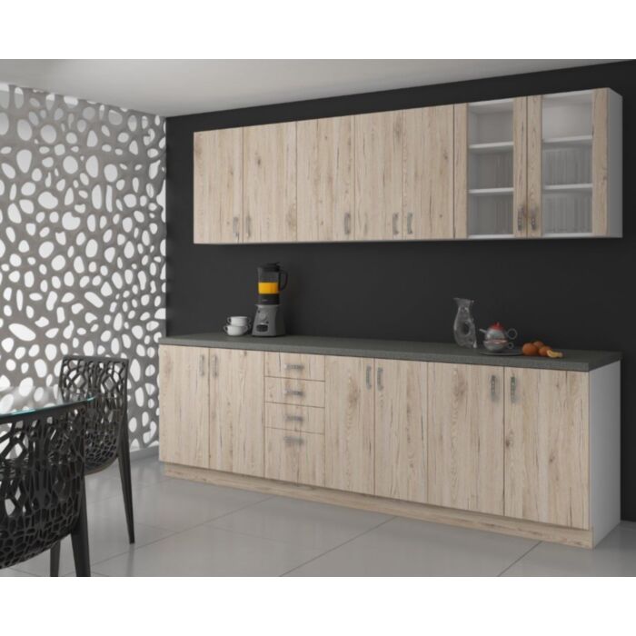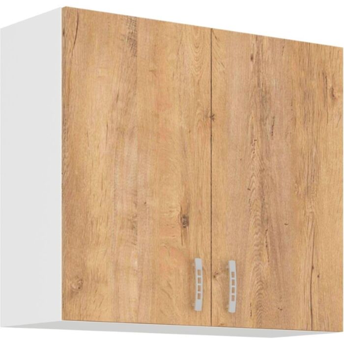 Zgornja omara ARA 80G je sestavljena iz fronte in korpusa iz MDF plošče, debeline 16 mm. Robovi so iz melamina. Na voljo je v barvi sonome in hrasta. Ročaji so sivi.