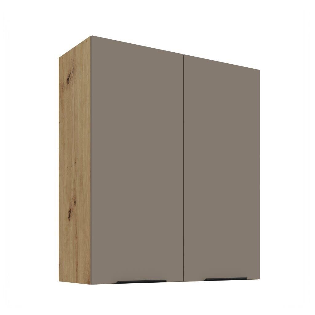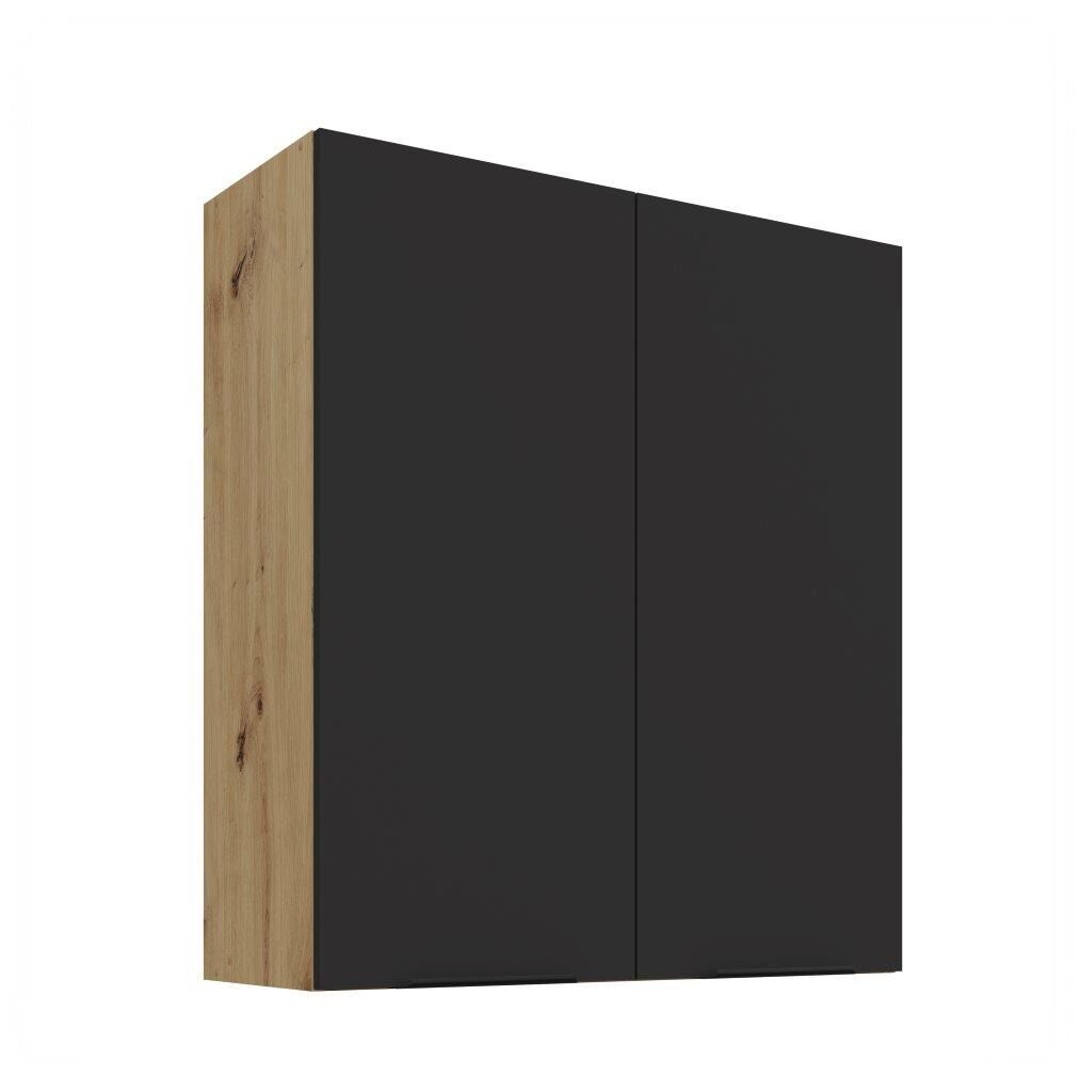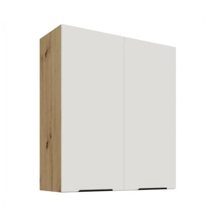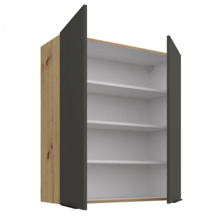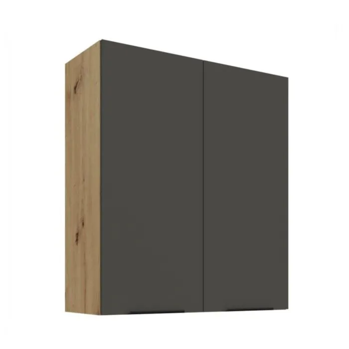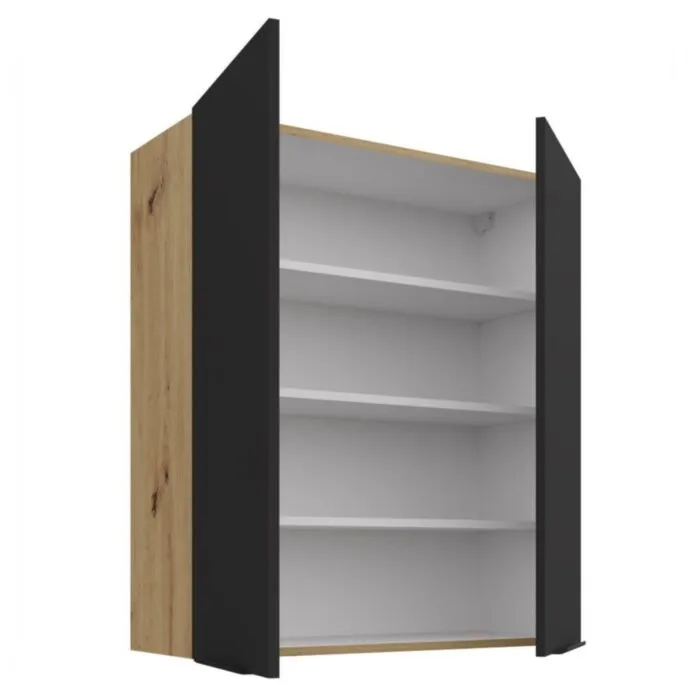 Zgornja omara ARIANA hrast 80G 90 je sestavljena iz laminirane plošče, debeline 16 mm, robovi so zaščiteni z ABS robom 1 mm, ročaji pa so iz kovine v črni barvi. Korpus je narejen iz laminirane plošče, debeline 16 mm, robovi so iz melamina. Kuhinjski element je na voljo v več barvnih kombinacijah in je opremljen z mehkim zapiranjem.