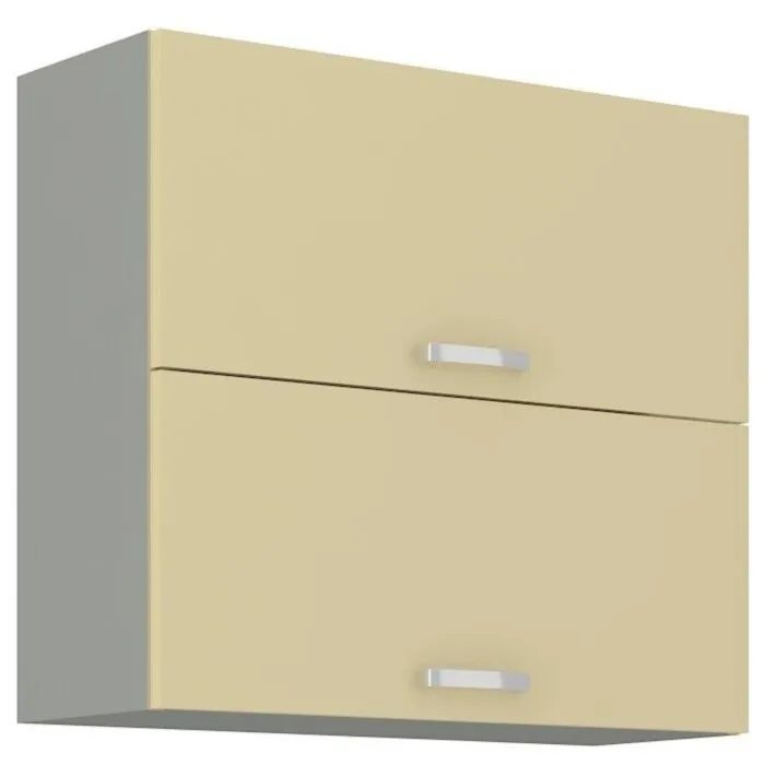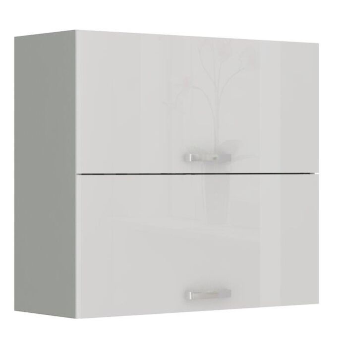Zgornja omara ELITE 80G dvižna je sestavljena iz fronte iz MDF plošče, debeline 16 mm, robovi so iz ABS 1 mm. Korpus je narejen iz laminirane plošče, debeline 16 mm, robovi so iz melamina. Kuhinjski element je na voljo v treh barvah visokega sijaja. V komentarju dopišete, katero barvno kombinacijo želite. Kuhinjski elementi imajo sistem mehkega zapiranja.