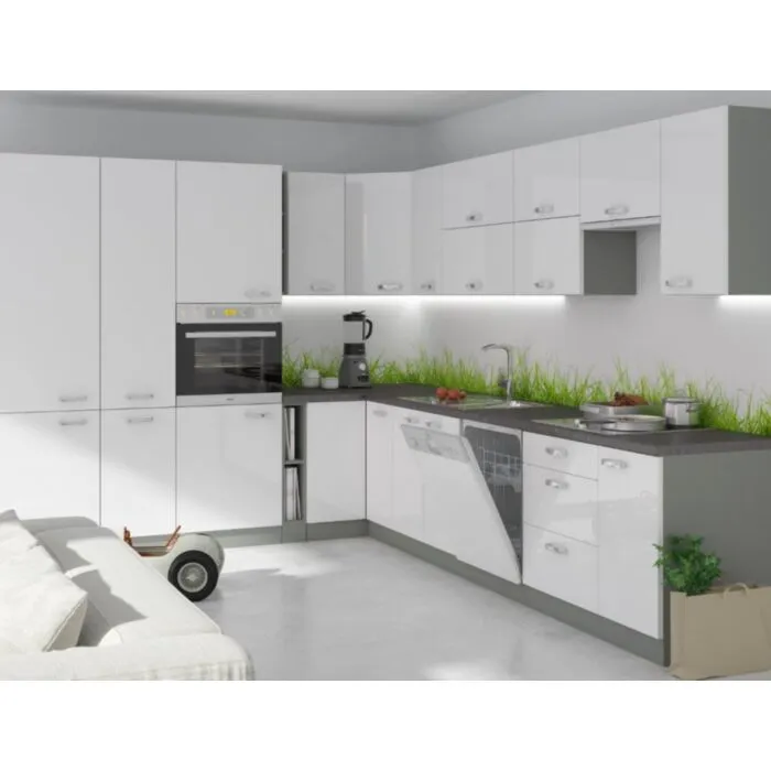 Zgornja omara ELITE 80G je sestavljena iz fronte iz MDF plošče, debeline 16 mm, robovi so iz ABS 1 mm. Korpus je narejen iz laminirane plošče, debeline 16 mm, robovi so iz melamina. Kuhinjski element je na voljo v treh barvah visokega sijaja. V komentarju dopišete, katero barvno kombinacijo želite. Kuhinjski elementi imajo sistem mehkega zapiranja.
