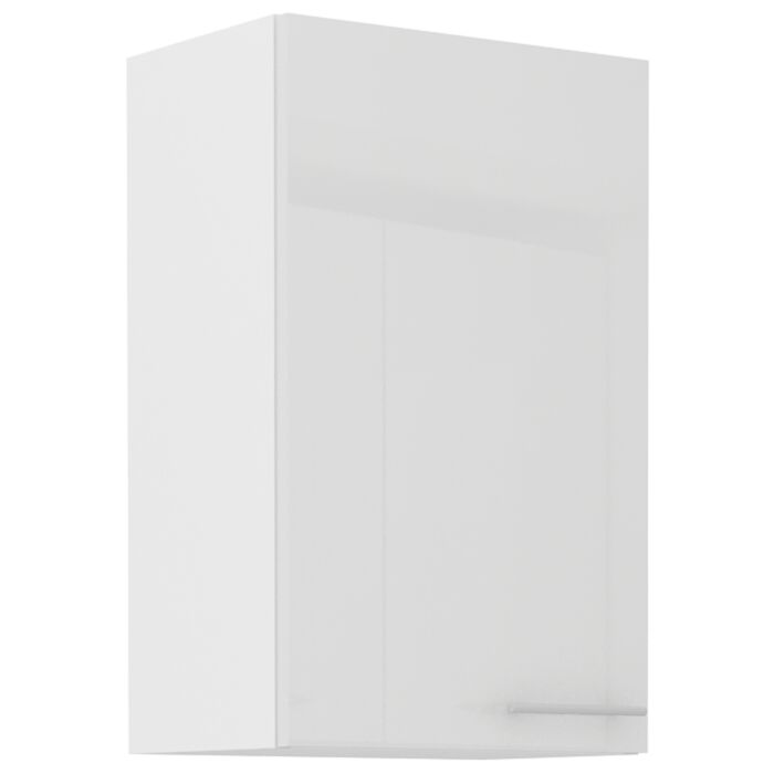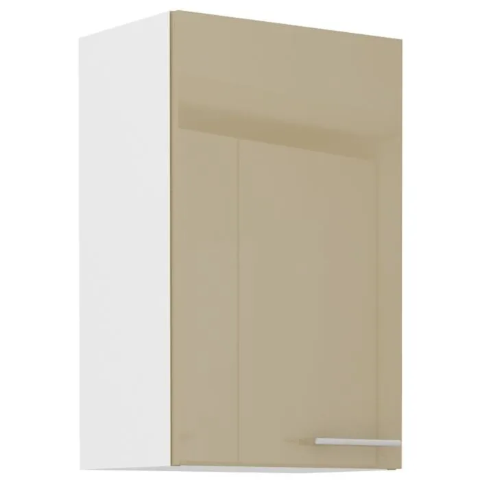 Zgornja omara ELZA 45G je sestavljena iz fronte iz MDF plošče, debeline 16 mm, robovi so iz ABS 1 mm. Korpus je narejen iz laminirane plošče, debeline 16 mm, robovi so iz melamina. Kuhinjski element je na voljo v capuccino barvi visoki sijaj, beli barvi visoki sijaj in sivi barvi visoki sijaj. V komentarju dopišete, katero barvno kombinacijo želite. Kuhinjski element ima sistem mehkega zapiranja.