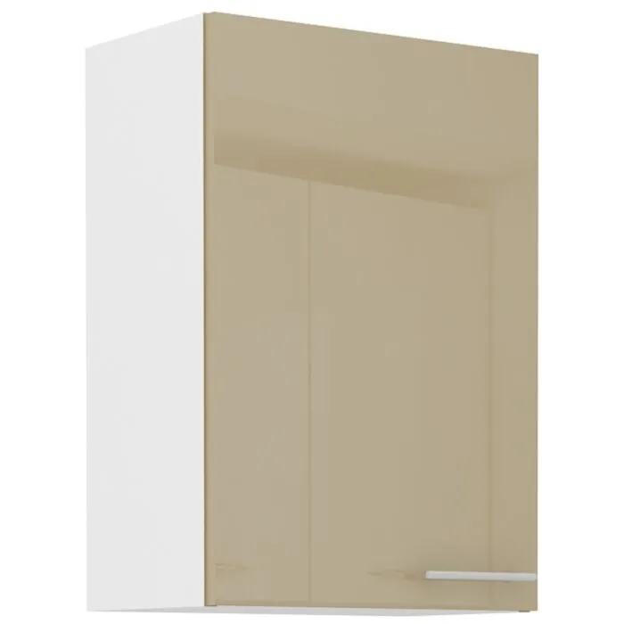 Zgornja omara ELZA 50G je sestavljena iz fronte iz MDF plošče, debeline 16 mm, robovi so iz ABS 1 mm. Korpus je narejen iz laminirane plošče, debeline 16 mm, robovi so iz melamina. Kuhinjski element je na voljo v capuccino barvi visoki sijaj, beli barvi visoki sijaj in sivi barvi visoki sijaj. V komentarju dopišete, katero barvno kombinacijo želite. Kuhinjski element ima sistem mehkega zapiranja.