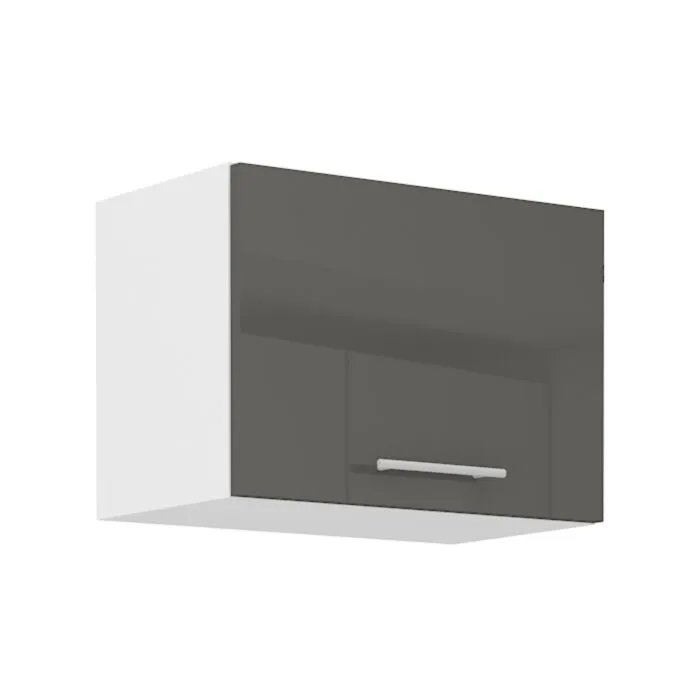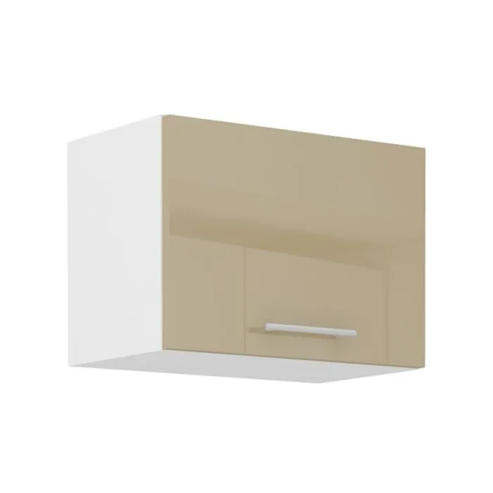 Zgornja omara ELZA 50G je sestavljena iz fronte iz MDF plošče, debeline 16 mm, robovi so iz ABS 1 mm. Korpus je narejen iz laminirane plošče, debeline 16 mm, robovi so iz melamina. Kuhinjski element je na voljo v capuccino barvi visoki sijaj, beli barvi visoki sijaj in sivi barvi visoki sijaj. V komentarju dopišete, katero barvno kombinacijo želite. Kuhinjski element ima sistem mehkega zapiranja.