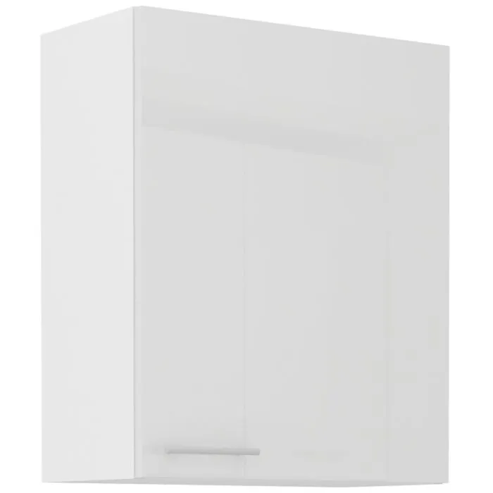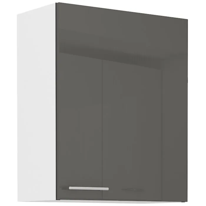 Zgornja omara ELZA 60G je sestavljena iz fronte iz MDF plošče, debeline 16 mm, robovi so iz ABS 1 mm. Korpus je narejen iz laminirane plošče, debeline 16 mm, robovi so iz melamina. Kuhinjski element je na voljo v capuccino barvi visoki sijaj, beli barvi visoki sijaj in sivi barvi visoki sijaj. V komentarju dopišete, katero barvno kombinacijo želite. Kuhinjski element  ima sistem mehkega zapiranja.