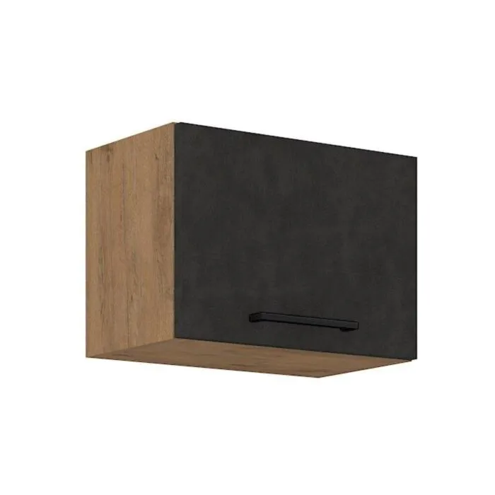 Zgornja omara PARIZ 50G dvižna je sestavljena iz fronte iz MDF plošče, debeline 16 mm, robovi so iz ABS 1 mm, ročaj je iz plastike v sivi barvi, debeline 19,2 mm. Korpus je narejen iz laminirane plošče, debeline 16 mm, robovi so iz melamina. Kuhinjski element je na voljo v barvi hrasta z matero in ima mehko zapiranje.