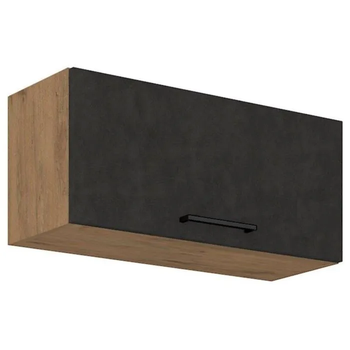 Zgornja omara PARIZ 80G 1 dvižna je sestavljena iz fronte iz MDF plošče, debeline 16 mm, robovi so iz ABS 1 mm, ročaj je plastike v sivi barvi. Korpus je narejen iz laminirane plošče, debeline 16 mm, robovi so iz melamina. Kuhinjski element je na voljo v barvi hrasta in ima mehko zapiranje.