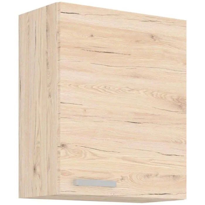 Zgornja omara SANREMO 60G je sestavljena iz fronte iz MDF plošče, debeline 16 mm, robovi so iz ABS 1 mm. Korpus je narejen iz laminirane plošče, debeline 16 mm, robovi so iz melamina. Na voljo je v barvi hrasta. Kuhinja ima sistem mehkega zapiranja.