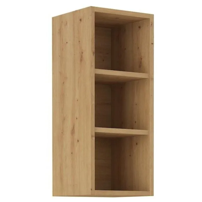 Zgornji poličnik TISA 30G 71Vje narejen iz laminirane plošče, debeline 16 mm, robovi so iz melamina. Kuhinjski element je na voljo v barvi hrasta.