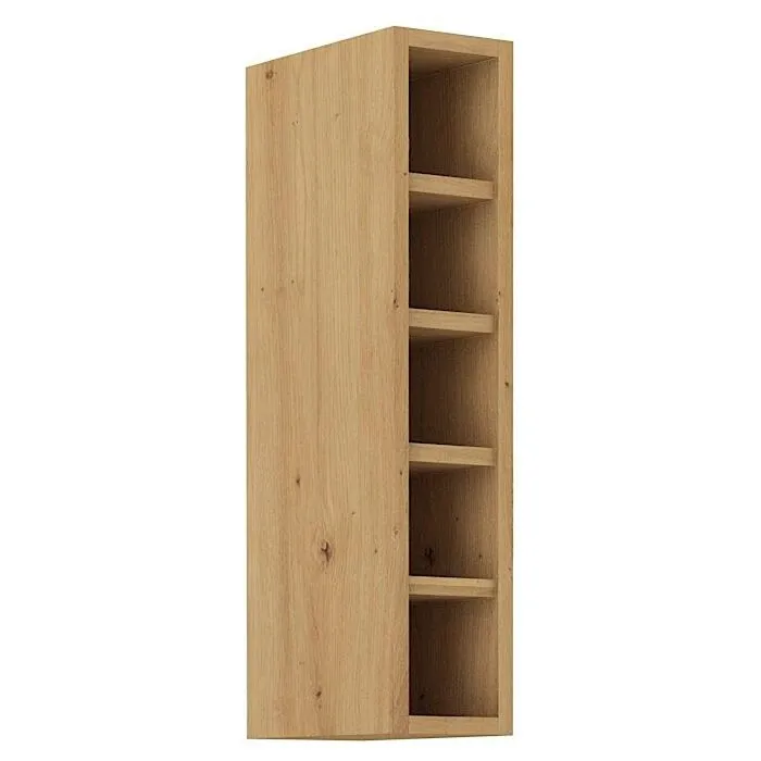 Zgornji poličnik VANESA 15G je narejen iz laminirane plošče debeline 16 mm, robovi so iz ABS 1 mm. Poličnik ima štiri poličke in je na voljo v barvi hrasta.