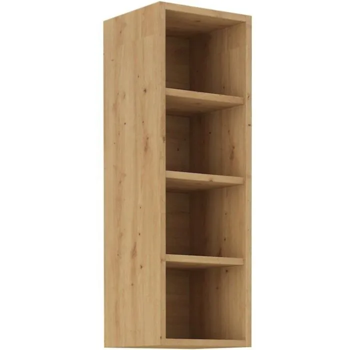 Zgornji poličnik VANESA 30G je narejen iz laminirane plošče debeline 16 mm, robovi so iz ABS 1 mm. Poličnik ima tri poličke in je na voljo v barvi hrasta.
