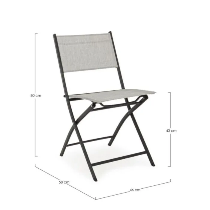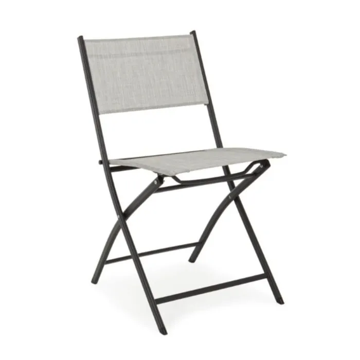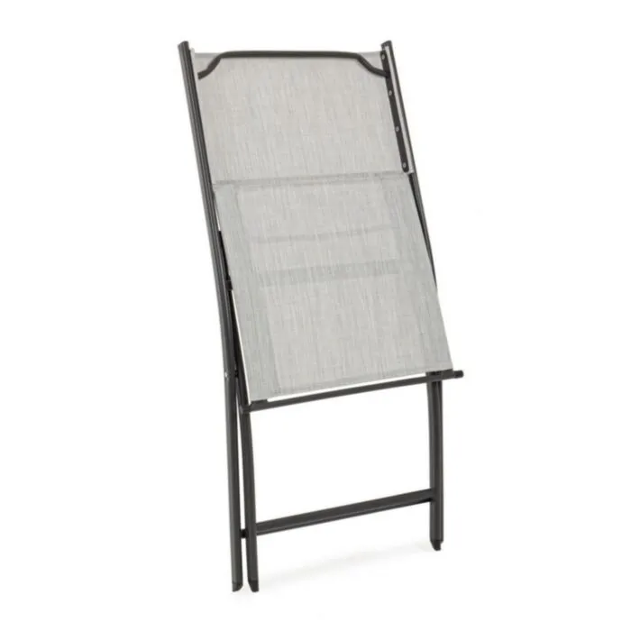 Zložljivi vrtni stol MARTINEZ siva ima jekleni črni okvir, sedež in hrbet sta iz tekstila.