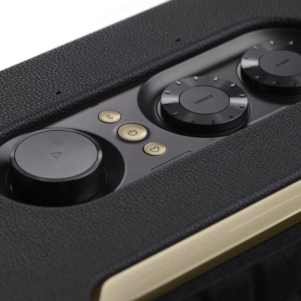 Zvočna postaja JBL AUTHENTICS 300 v črno-zlati barvni kombinaciji združuje vrhunski zvok in eleganten dizajn, ki bo popestril vaš prostor.